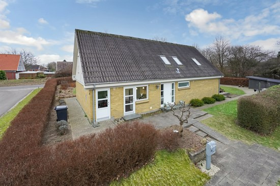 En anden mulighed findes på Saksmosevej 13, også i Jelling. Denne villa er sat til 995.000 DKK og breder sig over 124 m² på en imponerende grund på 1.766 m², fordelt på 6 rum.