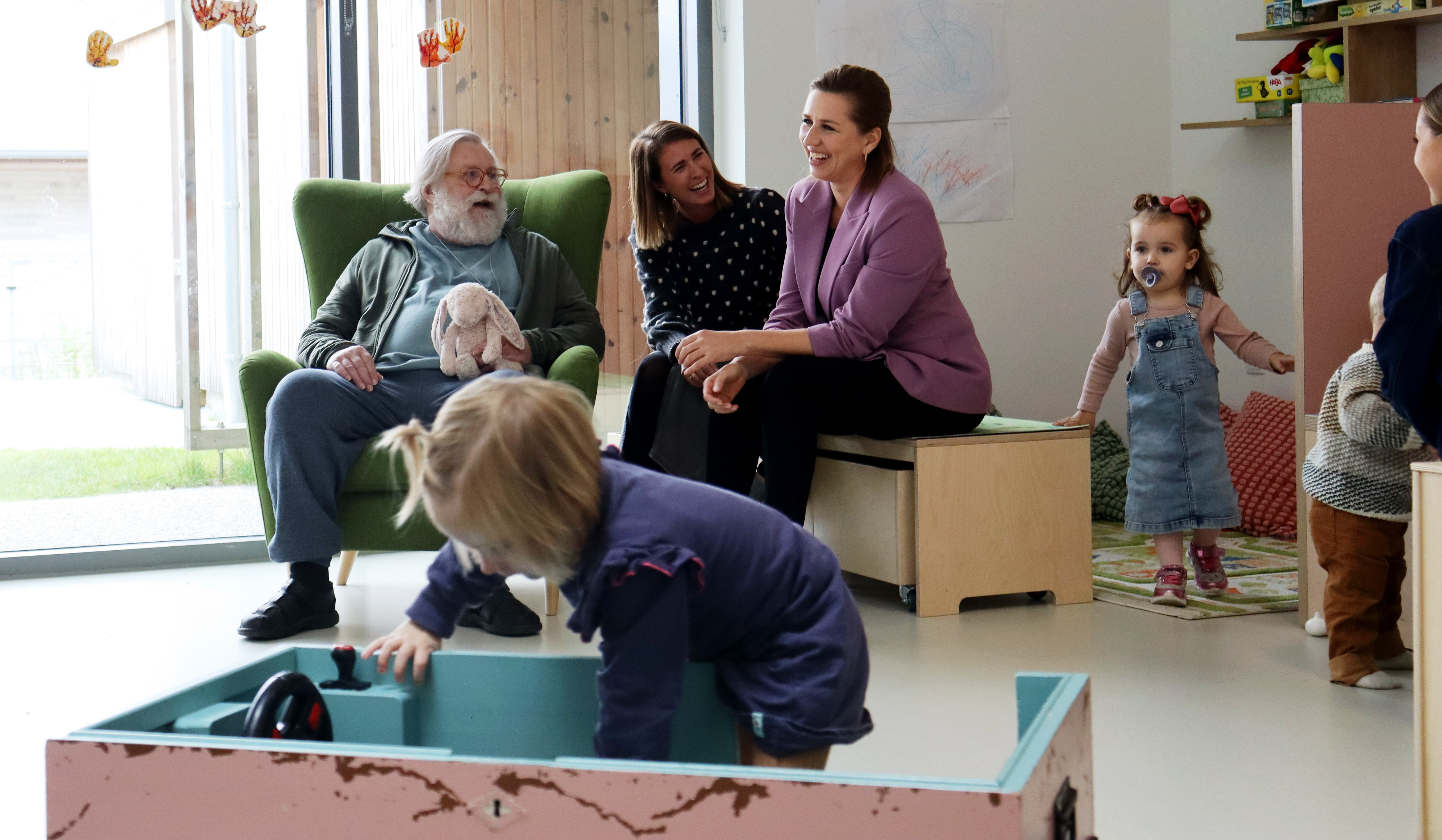 Statsminister Mette Frederiksen lagde for nylig vejen forbi Kong Gauers Gård for at opleve Danmarks første institution, hvor ældre, vuggestue- og børnehavebørn bor under samme tag. Besøget var en mulighed for statsministeren at få indsigt i erfaringerne med generationsfællesskabet, hvor ældre bor side om side med de yngste børn.