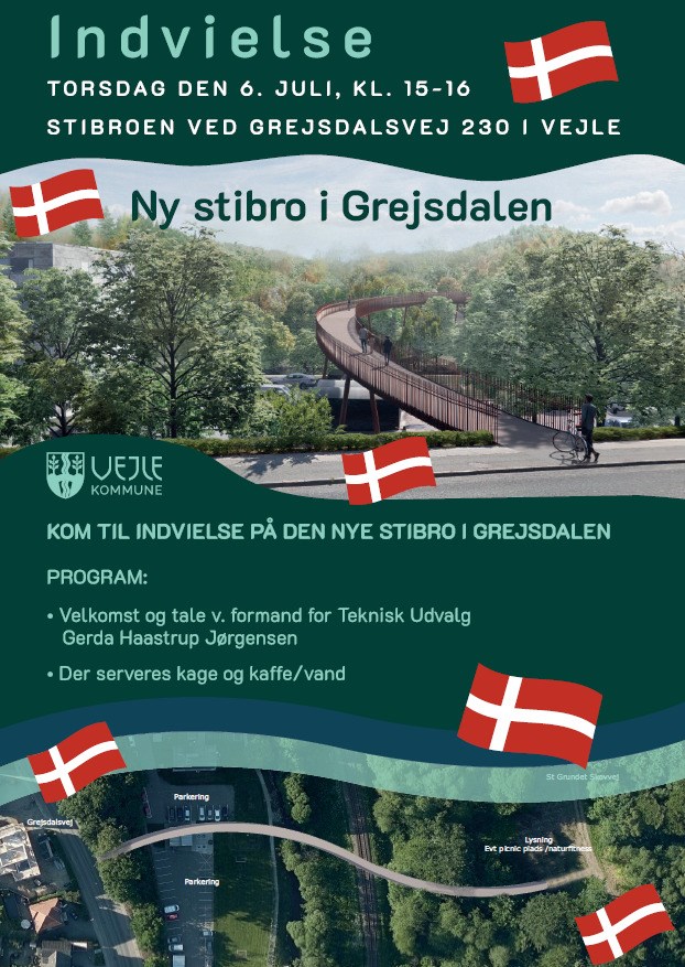 Så sæt kryds i kalenderen den 6. juli kl. 15 og vær med til at fejre indvielsen af den nye stibro ved Grejsdalen.
